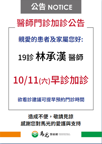 【屏東院】林承漢醫師10/11(六)早診加診,欲看診可提早或往後預約 !