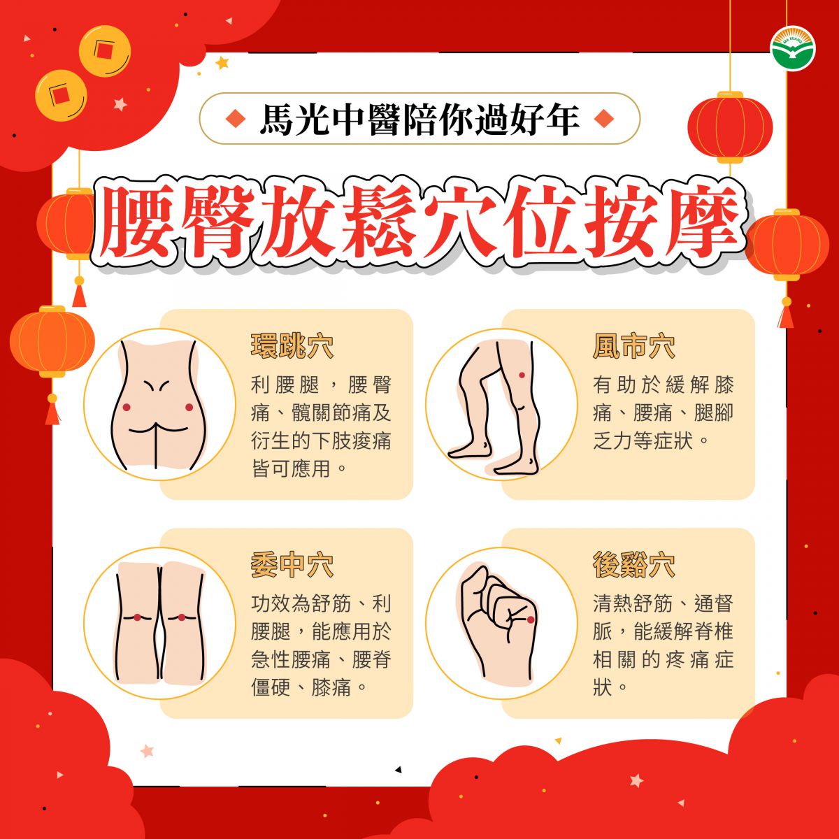 在膝後中間位置,功效為舒筋、利腰腿,能應用於急性腰痛、腰脊僵硬、膝痛。