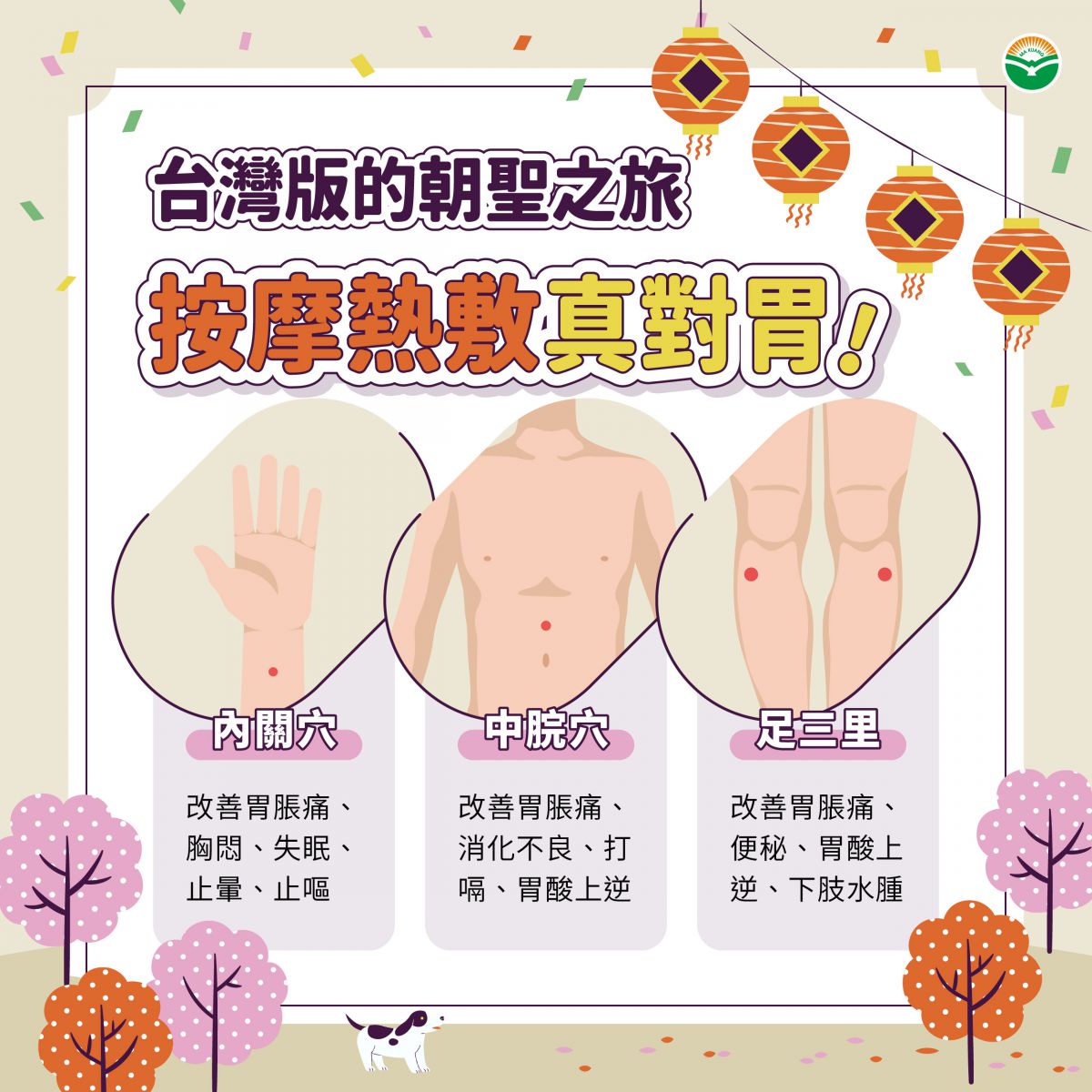 繞境或旅遊時難免飲食不規律,只要平時把脾胃照顧好,腸胃功能穩定,就不容易因一兩餐亂吃而出現不適。透過良好的生活作息與日常保養,不僅能降低出遊期間腸胃不適的發生,也能減少日後演變成慢性腸胃問題的風險。預防勝於治療,從今天開始養成保胃好習慣吧!