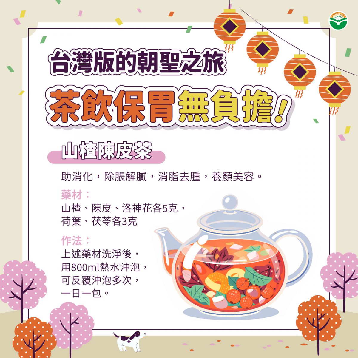藥材:山楂5克、陳皮5克、洛神花5克、荷葉3克、茯苓3克