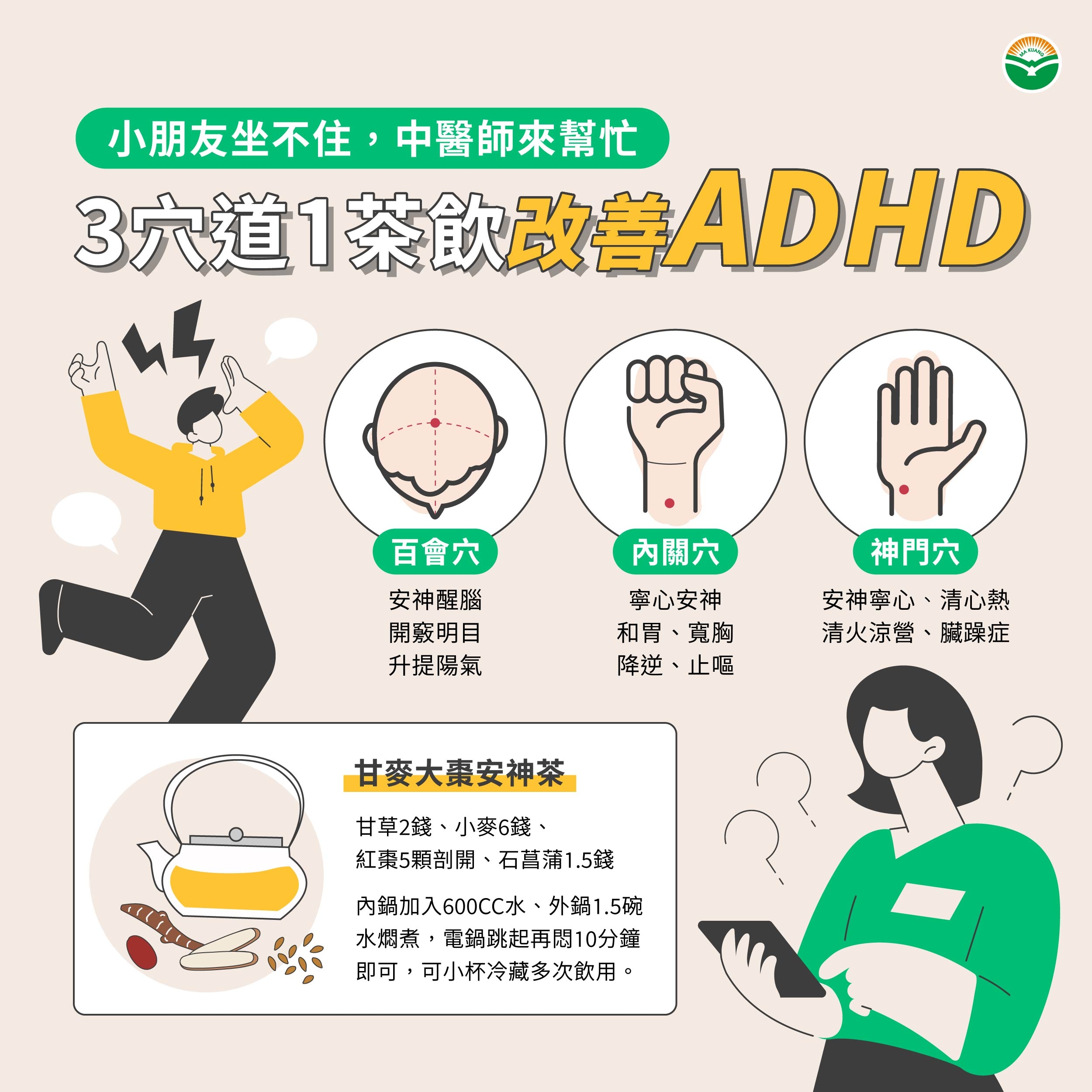 孩子總是不專心或者坐不住?甚至被老師說是過動了?馬光中醫彰化分院羅凱陽醫師提到,ADHD在中醫主要歸類在「臟躁」、「健忘」等範疇,其實只要用以下幾個方法,也能大幅改善注意力不集中、好動衝動的問題。