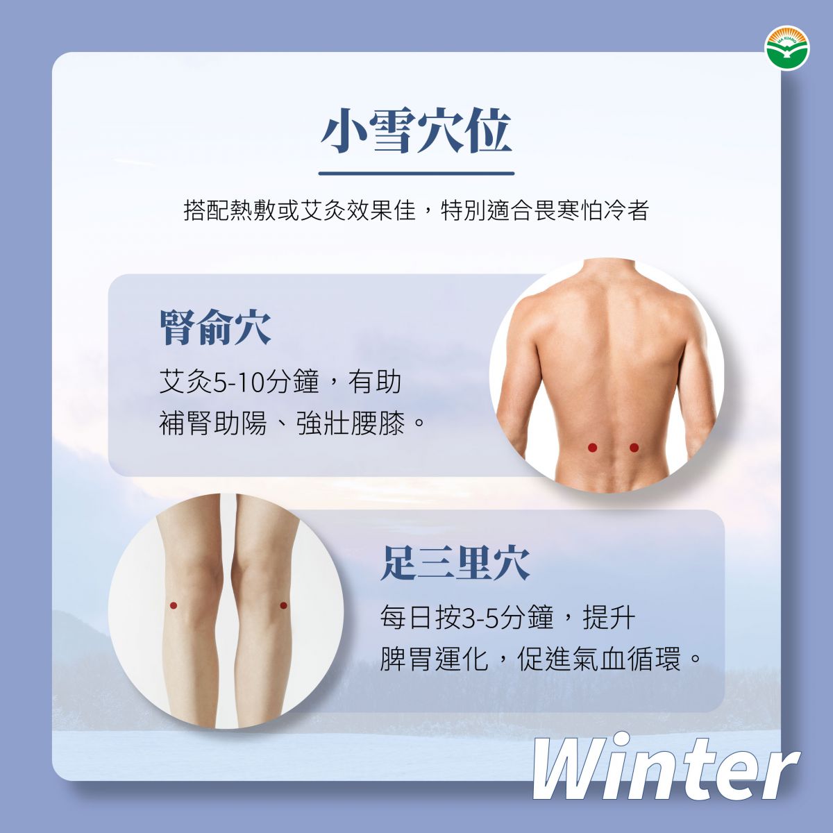 穴位保養:灸腎俞、按足三里,驅寒養元氣