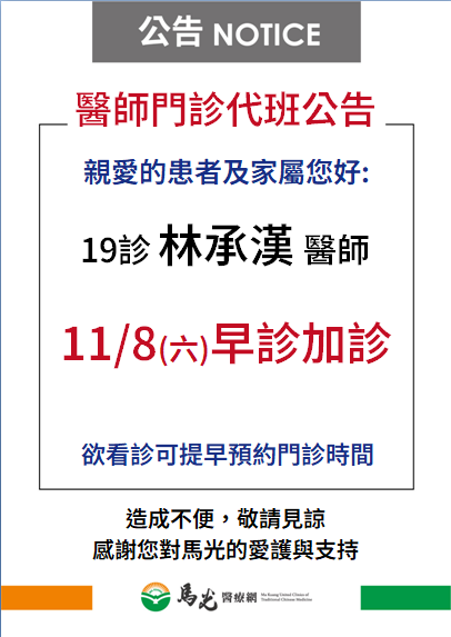 【屏東院】林承漢醫師11/8(六)早診加診,欲看診可提早或往後預約 !