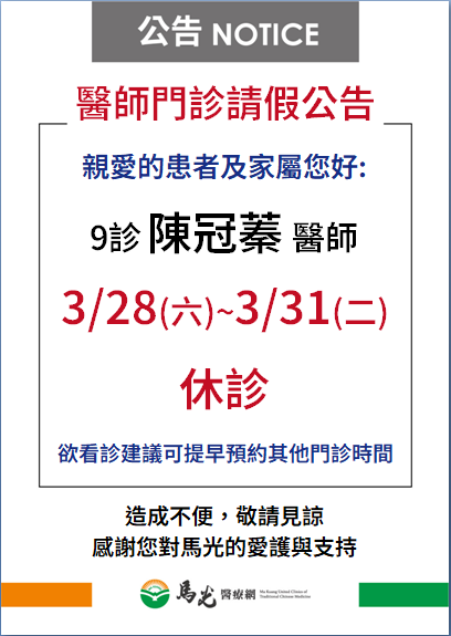 【屏東院】陳冠蓁醫師3/28(六)~3/31(二)休診,欲看診可提早或往後預約 !